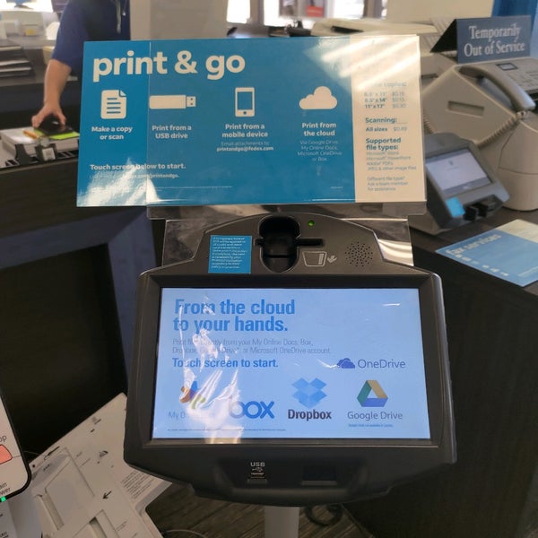 FedEx - Shipping and printing locations near you FedEx Office. Choose from over 2,000 locations, many open later than The UPS Store, offering packing and domestic and international shipping services. Conveniently hold packages for pickup at our locations. Get printing services for posters, presentations and more. Print and ship. Self-Service Printing: Send & Print Service - Print & Go ... The quickest way to print and go, on your schedule and at convenient FedEx Office locations near you. 1. Email your files to printandgo@fedex.com and receive a retrieval code. 2. Go to the self-service area at a nearby FedEx Office. 3. Select PRINT, use your code and follow the instructions. Fedex Print and Go - Get the Cheapest Price Here FedEx Print and Go is a self-service option that you can use at any FedEx office. This service allows you to print your documents with minimal human interaction. All you have to do is send your files and wait for a confirmation email. After that, you can pick up your print at any FedEx location. ... Is Print and Go email at Fedex Self Serve Kiosk safe? : FedEx The file is available to print immediately and will be accessible to print at any FedEx Office location for 10 days in case you need to print it again later. With the 7-digit retrieval code, you can print the file quickly and easily at any FedEx Office location.