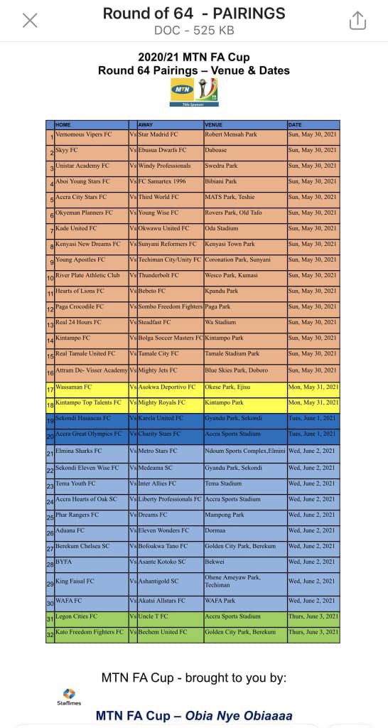 FA Cup fifth round draw confirmed [Full fixtures] - Daily ... The draw for the fifth round of the FA Cup was conducted on Sunday. Premier League leaders, Manchester City will face Peterborough United. The FA Cup fifth round will take place midweek, the week ... Dates for Women's FA Cup released - Ghana Football Association The Women's FA Cup Committee has released the fixtures for the Round of 64 of the competition. The matches are scheduled from Friday, February 4 to Thursday, February 10, 2022. Holders Hasaacas Ladies will kick start their title defence at the Gyandu Park against Fiase Golden Royal on February 7 ... FA Cup 2021-22: Draw, fixtures, results and guide to each ... The draw for the 2021-22 FA Cup fourth round took place on Sunday January 9, 2022. Liverpool will play Cardiff City, while an all-Premier League clash is in store when Tottenham play Brighton. FA Cup fifth round: Live stream Chelsea, Liverpool, TV ... FA Cup fifth round: Live stream Chelsea, Liverpool, TV channel, how to watch online, start time, news, results Another Premier League giant has already fallen out of the FA Cup By James Benge