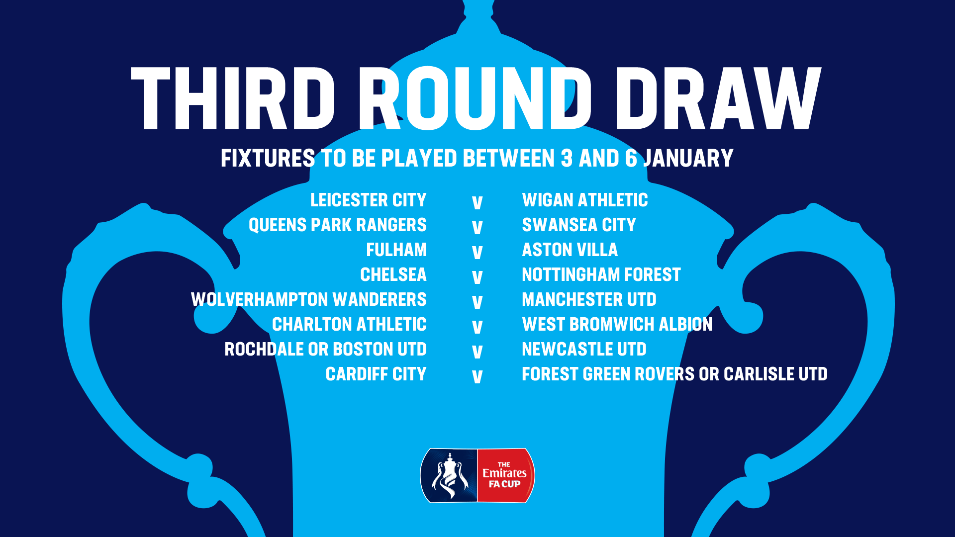 FA Cup Fixtures » Football News > Scores > Results ... The FA Cup Fixtures 2021 - 2022. The Emirates FA Cup 2021-22 third round ties will take place between Friday 7 and Monday 10 January. The full schedule and further live broadcast details for the third round of the Emirates FA Cup's 150th anniversary season have today been confirmed following selections by BBC Wales, S4C and international broadcasters.