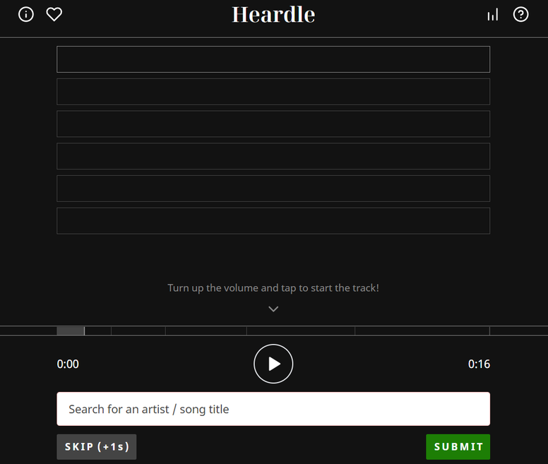 Heardle music Wordle: New game has you guessing the song ... Forget Wordle, Heardle is the new music version where you get six tries to guess the song. It's time to face facts: Wordle just hasn't hit right since The New York Times got their big, rich ...