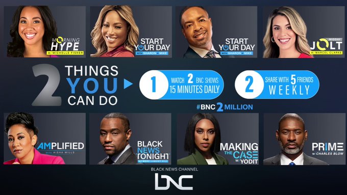 Black News Channel's BNC 24/7 Now Streaming on Pluto TV - BNC Tallahassee, Florida - August 31, 2020 - The Black News Channel (BNC), the nation's only culturally specific 24/7 news network that reflects the Black community's diverse viewpoints, announced today that its OTT streaming news service BNC 24/7 click here for promo is now available on Pluto TV-one of the leading free television services. Black News Channel shuts down after backer declines to fund ... Mar 26, 2022 — The Black News Channel, a cable news station focused on serving Black viewers, ceased operations on Friday afternoon after its billionaire ... TV Schedule - BNC The Shows Start Your Day with Sharon + Mike Weekdays 6-10AM ET D.C. Today Weekdays 10-12PM ET BNC Live Weekdays 12-5PM ET The World Tonight w/ Kelly Wright & Nayyera Haq Weekdays 5-7PM ET AMplified with Aisha Mills Weekdays 7-8PM ET Black News Tonight with Marc Lamont Hill Weeknights 8-9PM ET Making the Case with […]