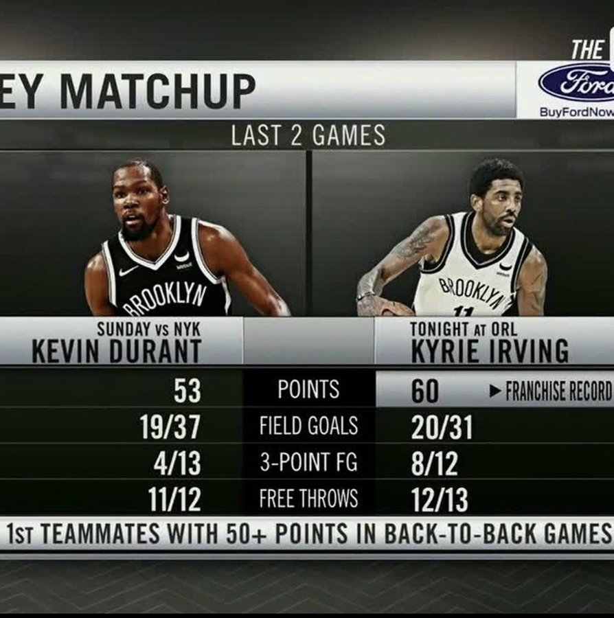 Nets: Kyrie Irving's 60-point barrage, by the numbers Last night, Karl-Anthony Towns scored 60 points; tonight Kyrie Irving did the same. It's the first time since 1962 that there have been 60-point games on consecutive days. That 1962 instance was ...